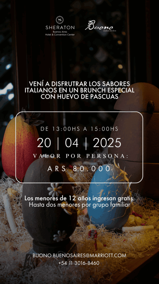 Este domingo 20 de abril, Buono Italian Kitchen restaurant de Sheraton Buenos Aires Hotel & Convention Center celebrará Pascuas con una edición especial de su clásico Buono Bellissimo Brunch. Una propuesta pensada para disfrutar en familia, donde los sabores italianos, el chocolate y la buena mesa se combinan en una experiencia única.