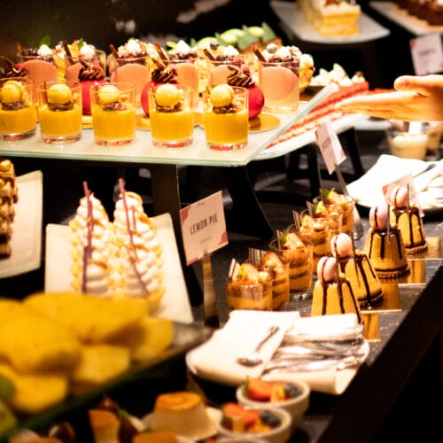 La propuesta incluye estaciones de antipasti con quesos y fiambres italianos, panes artesanales horneados en horno de barro, frutos frescos de mar, ensaladas y encurtidos caseros. Los platos calientes —que varían cada semana— se sirven a la carta o en formato buffet, e incluye opciones veganas, vegetarianas y sin gluten. La mesa dulce, siempre protagonista, sorprende con recetas clásicas y versiones modernas. Para esta ocasión especial, el broche de oro será un huevo de Pascuas artesanal.