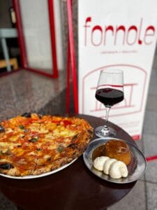 Fornole queda en Holmberg 2323, Villa Urquiza. La pizzería abre de miércoles a domingos de 19:30 a 00 h y los sábados y domingos al mediodía de 12:30 a 16 h, salón y take away. La panadería abre de lunes a sábados de 9 a 17 h. Por reservas y más información comunicarse por whatsapp al +54 11 3214-3632. IG @fornole.