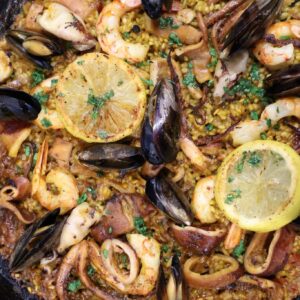 Apagar el fuego y dejar reposar la paella unos minutos antes de servirla. se puede decorar con unas rodajas de limón en el emplatado final.