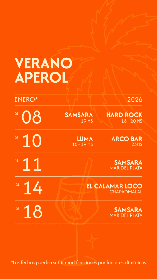 La agenda puede variar según el clima. Para conocer más, visitar su cuenta oficial de Instagram: https://www.instagram.com/aperolargentina/?hl=es