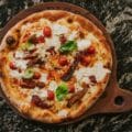 Ingredientes: Mix de verdes (75 g), tomate fresco (4 rodajas cortadas a la mitad, 55 g), tomate asado (65 g), croutones (45 g), aceitunas negras (20 g), albahaca fresca (3 g), burratina (90 g), pesto de albahaca (20 g), semillas de sésamo (6 g), aceite de oliva, sal y pimienta a gusto.