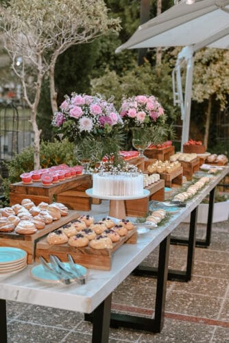 Bebidas: Té o infusión, jugo de naranja y una copa de espumante por persona.