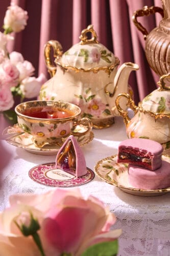 Conito relleno de dulce de leche artesanal con un corazón de frutos rojos —frutilla, arándano, mora y frambuesa—, cubierto con chocolate blanco belga sabor frutos rojos, con frutas liofilizadas.