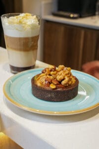 Próspero Velazco, creador de la pastelería que lleva su nombre, eligió la tarta de almendras y chocolate como la opción ideal para maridar la nueva variedad. “Amaretti Decaffeinato combina muy bien con este postre, ya que acentúa las notas de vainilla y almendra. Este maridaje me recuerda a las tardes con mi abuela, cuando a la salida de la escuela comía una tarta con chocolate caliente. Me lleva a la infancia”.