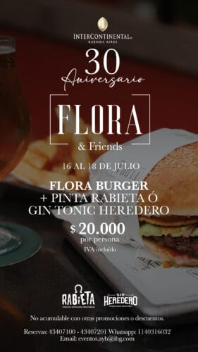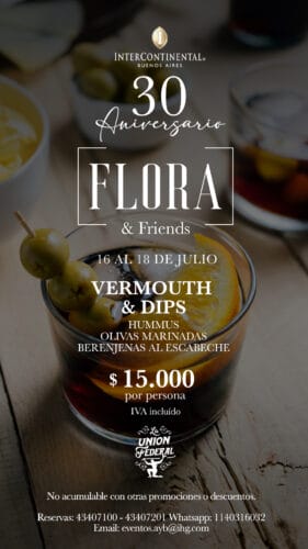 Del miércoles 16 al viernes 18 de julio de 18 a 22 hs Flora se viste de encuentro. Tres noches para relajarse con sabores, música y brindis entre amigos. Dos propuestas exclusivas invitan a celebrar con sabor:
