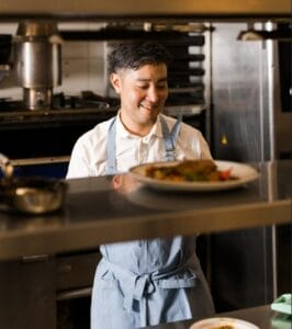 La experiencia diseñada por el chef ejecutivo Maximiliano Matsumoto comienza con almejas tozasu, una entrada que resalta la frescura y el equilibrio de sabores. El plato principal, un arroz negro meloso con pesca del día y mariscos, ofrece una combinación de intensidad y textura que define el recorrido. El cierre llega con un postre de sorbete de chocolate, bizcocho húmedo y toffee, logrando un final armónico y elegante.